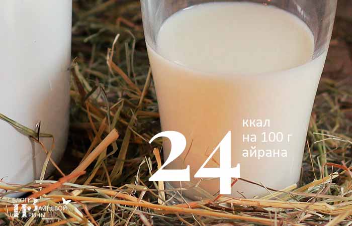 Калорийность айрана составляет 24 ккал. В 100 г продукта содержится 1,1 г белков, 1,5 г жиров, 1,4 г углеводов. Напиток по праву считается диетическим, но при этом имеет богатый состав и множество полезных свойств.
