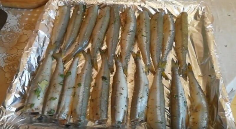 - смазать форму для выпечки растительным маслом и поместить в емкость корюшку. Посыпать рыбу тертым пармезаном, по желанию, и отправить в духовой шкаф, выставив температуру не менее 180 градусов.