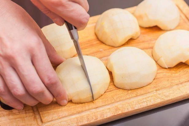 - Тесто раскатывают до толщины в 3 мм, затем следует нарезать его кружочками, подходящими по размеру к формочкам для выпекания корзинок, распределить по ним заготовки, сделать легкие наколы вилкой, чтобы в процессе готовки оно не поднималось. Полуфабрикат помещают в морозилку на 15 минут, а затем сразу выпекают изделия в горячей духовке 15 минут при включении на 180 градусов.