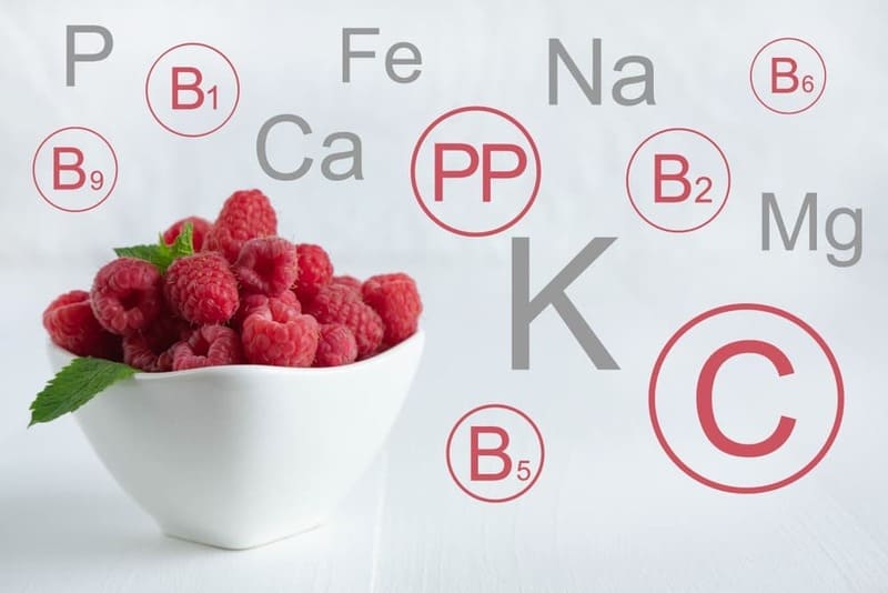Какие витамины содержатся в малине? В таблице представлен витаминно-минеральный состав 100 г свежих плодов.