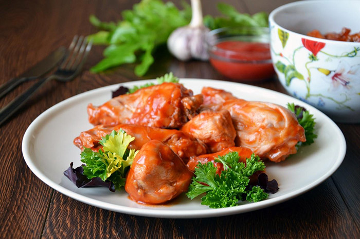 Рецепты птицы в томатном соусе встречаются в разных вариациях. Можно получить новые вкусы, используя дополнительные ингредиенты: овощи, специи, зелень. Готовьте с любовью!