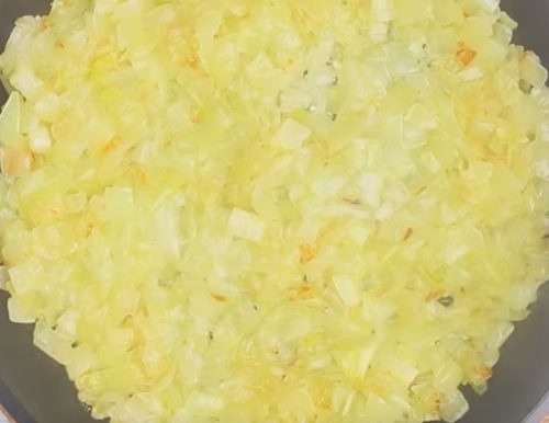 1. На разогретой сковородке с растительным маслом обжарьте мелко нарезанный лук. Он должен стать мягким, прозрачным и слегка подрумяниться.