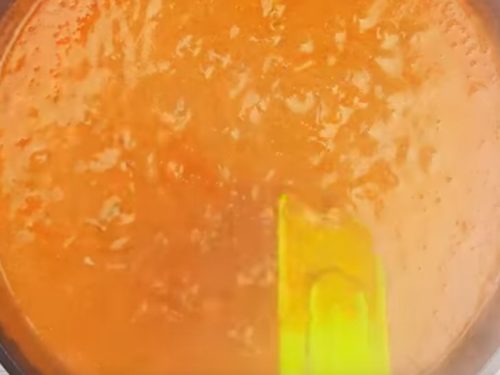 - Консервированную мякоть помидоров измельчите блендером с 1 ч.л. сахара и щепоткой соли.