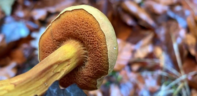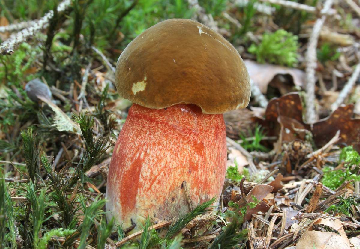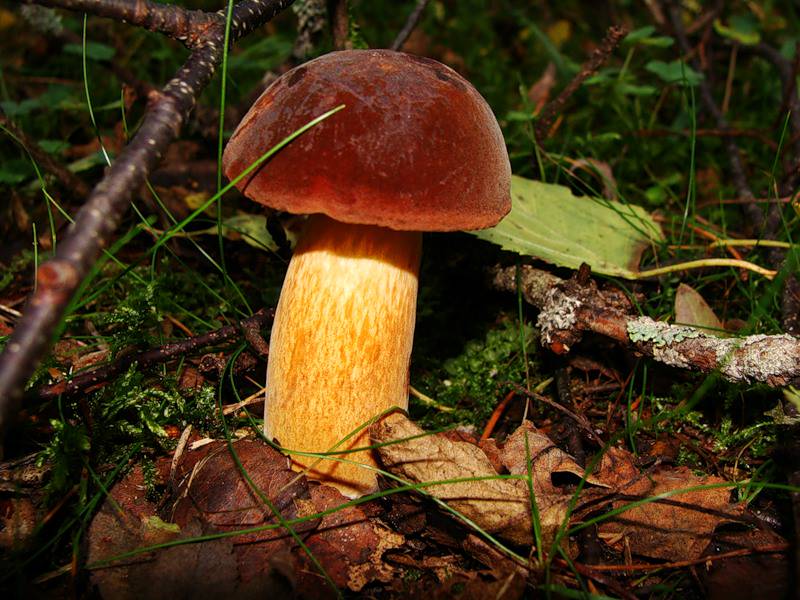 Гриб с коричневой шляпкой и желтой ножкой. Съедобные виды