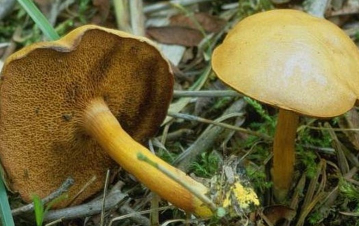 - Паразитный моховик. В отличие от съедобных моховиков имеет шляпку меньших размеров и селится не на мху, а на других плодовых телах.