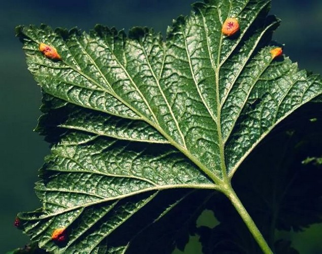 Смородиновые насаждения поражает 2 вида ржавчины: столбчатая и бокальчатая. Последний случай более распространенный. На листовых поверхностях и завязях образуются оранжевые наросты.