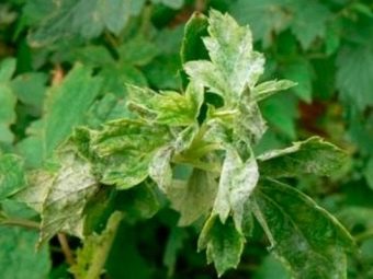 Симптоматика сходна с той, что проявляется при мучнистой росе: темные пятна на листах различной конфигурации, с бурой окантовкой. Но на них нет белого налета. Со временем, если не предпринимать никакого лечения, листовая составляющая чернеет и опадает. Побеги затормаживаются в росте.