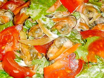 1. Делать с ними салаты. Например: нарезанная сваренная по всем правилам мякоть мидий перемешивается с кусочками курицы. Добавляется свежая зелень (укроп, базилик, мята, ореган). Заправка: сок одного лайма смешать с тремя чайными ложками жидкого мёда и 1 столовой ложкой винного уксуса.