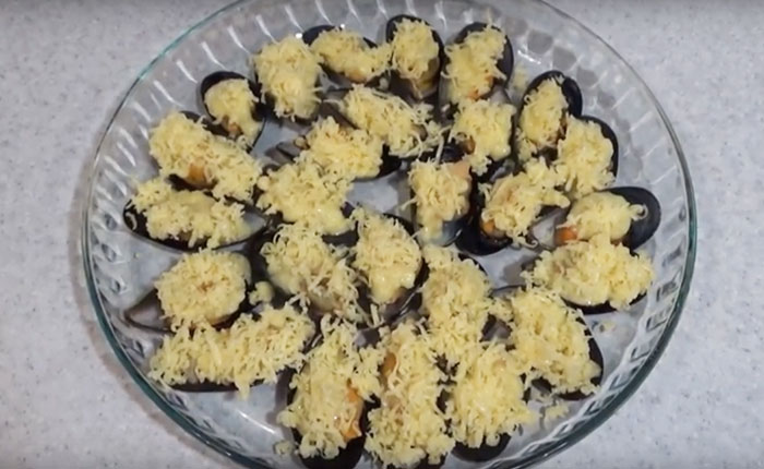 6. Форму с мидиями в сливочном соусе отправьте в духовку или микроволновку на несколько минут. Как только вы увидите, что сыр расплавился, блюдо полностью готово.