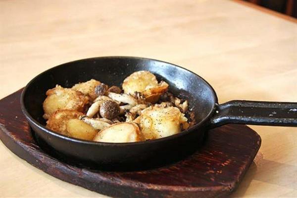 При зажарке морского деликатеса стараются, чтобы один кусочек не прикасался к другому. Большое количество разбивают на партии, их нужно жарить поочередно. Подается кушанье в горячем виде. Мясо гребешков сладковато по вкусу. С жареным морским продуктом идеально сочетание сливочного, имбирного, апельсинового соусов, сливочного соуса с грибами, терияки и унаги. В качестве гарнира лучше всего деликатес сочетается с рисом и картошечкой.