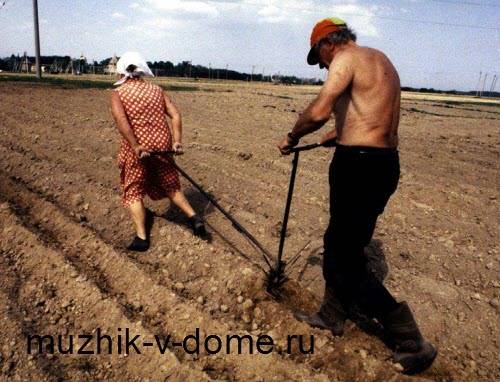 Перед нарезкой гребней с помощью механизмов почву рыхлят и боронуют. При использовании двухрядного окучника порядок работы такой:
