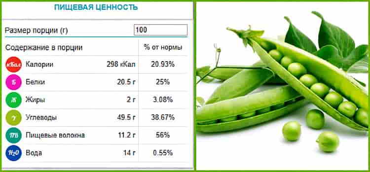 Содержание углеводов и калорийность продукта зависит от сорта и условий роста растения. Сколько в отварном горохе будет также зависит от того каким образом его приготовить. Бжу варёного гороха следующее: