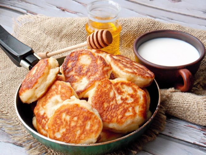 - Сковородку с рафинированным маслом разогреть. Выпекать оладушки с содой с двух сторон на умеренном огне.