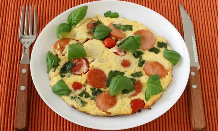 Рецепт 6. Омлет с колбасой и шампиньонами на сковороде