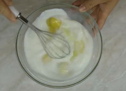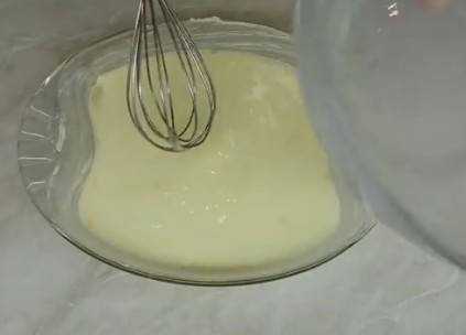 яйца с молоком надо хорошенько взбить (можно даже использовать блендер с насадкой-венчиком);