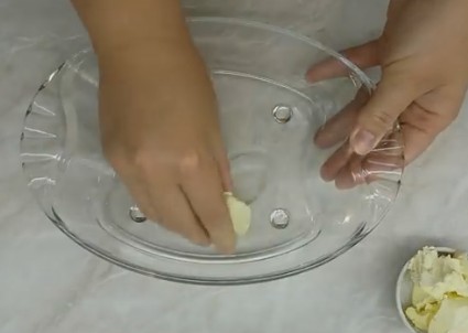 Сковороду смазать растопленным сливочным маслом при помощи силиконовой кисточки. Поскольку блюдо готовится для детей, омлет можно вливать в специальные контурные силиконовые формочки в виде животных, цветов или фруктов, которые кладутся на дно сковороды