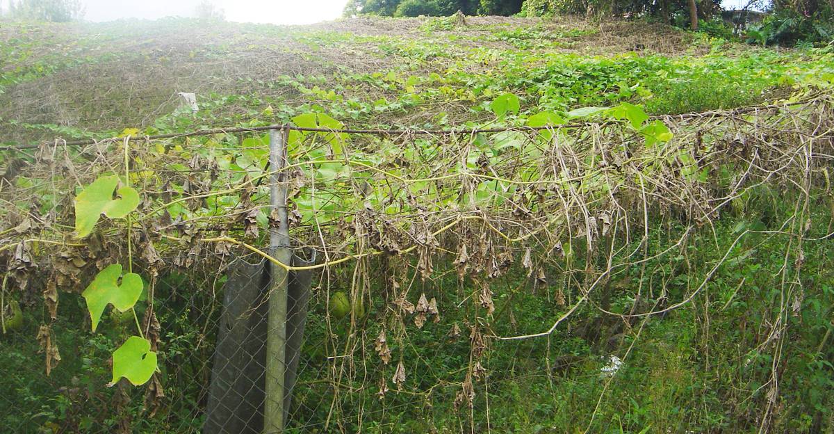 С помощью многочисленных цепких усиков чайот карабкается вверх по опоре