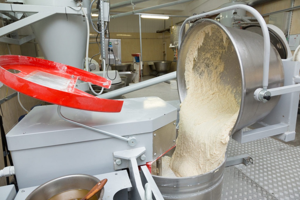 - Тестомес. Электромеханический агрегат, который используется для замеса теста без насыщения массы воздухом. В зависимости от масштаба предприятия, это кондитерское оборудование можно приобрести с объемом дежи от 10 до 500 л. С его помощью вымешиваются до однородности всевозможные виды теста — от жидкого дрожжевого для приготовления пончиков до капризного песочного для печенья. Также тестомесы применяют для того, чтобы перемешать начинку.