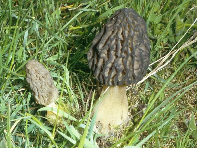 Конические (черные) сморчки начинают расти первыми в начале сезона. Они могут достигать больших размеров