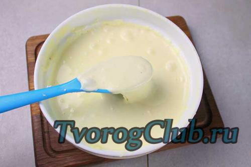 1. Смешиваем творог с содой и оставляем на полчаса прямо на столе. За это время сода прореагирует с молочной кислотой и в твороге образуются соли-плавители. Внешне консистенция тсущественно изменится.