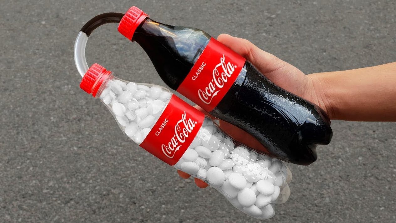 - «Бомбочка» . В сети уже давно гуляют ролики с приколом про кока-колу и Ментос. Конфетку бросают внутрь бутылки и наблюдают извержение чёрного вулкана.