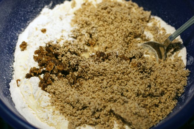 Высыпать изюмно-ореховую смесь
