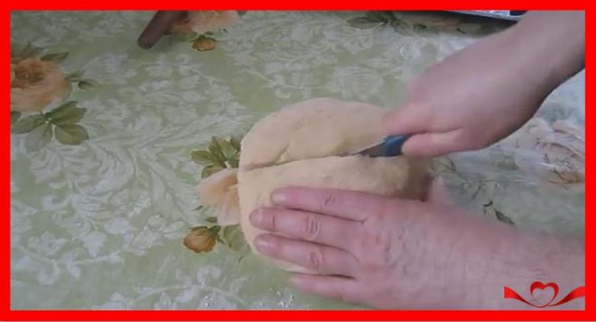 - Поделить тесто на 3 части и 1/3 отрезать.