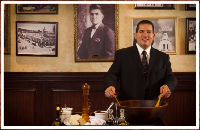 Сегодня ресторан Caesar’s оформлен в старинном европейском стиле с чёрно-белой плиткой и барной стойкой из красного дерева. Белоснежные рубашки официантов под чёрными жилетами и – обязательно – галстуки. На стене – портрет повара Ливио Сантини, который работад на братьев Кардини в этом ресторане.Тихуана, Мексика