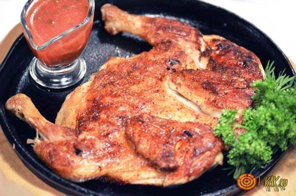Цыпленок табака — блюдо кавказской кухни, ставшее крайне популярным в России. Технология его приготовления не совсем обычна и выглядит примерно так: