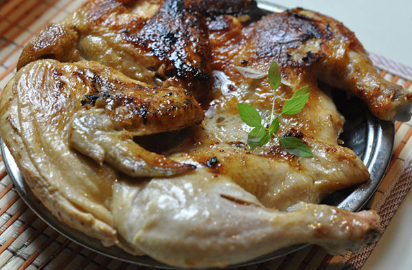 — Если под рукой нет цыпленка, можно использовать и обычную курицу до двух килограммов веса, только времени на жарку она потребует несколько больше.
