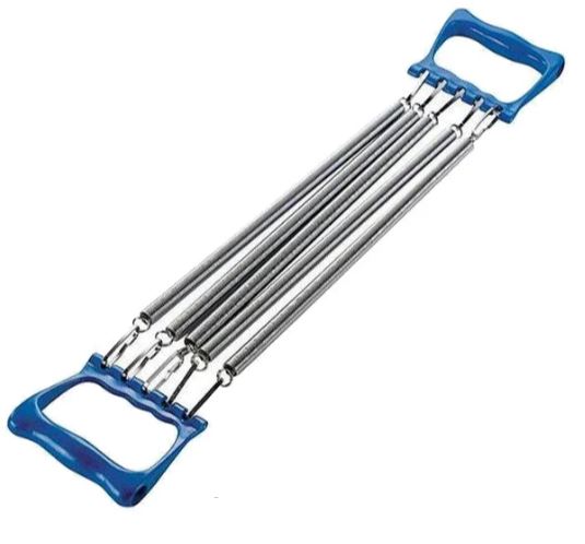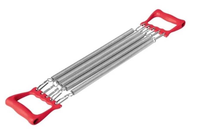 Один из лучших грудных эспандеров, которые способствует укреплению и развитию различных мышц. Конструкция проста в применении и дает возможность внести в тренировки разнообразие. Для удобства присутствует регулировка нагрузки, максимальное значение – 20 кг. Диаметр металлических пружин составляет 1.3 см, при этом длина – 35 см. Ручки изготовлены из качественного материала, который не скользит.