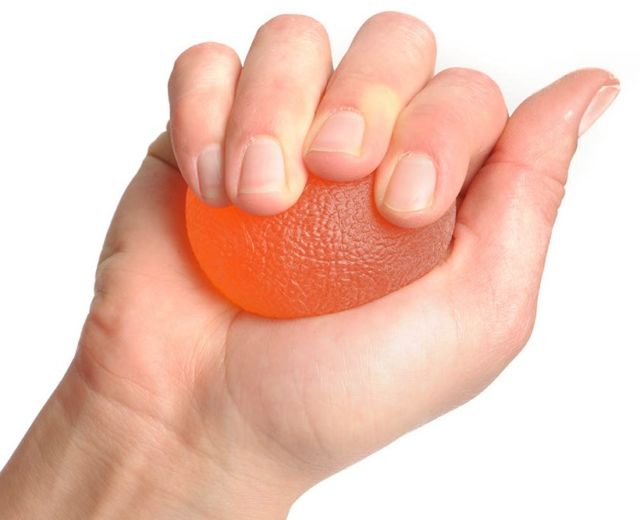 - Двигаем пальцами, вращаем запястьем, сжимаем мягкий тренажер (подходит любая разновидность снаряда из резины «Торнео» либо иной фирмы).