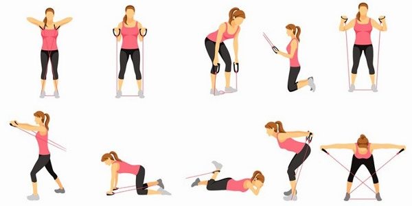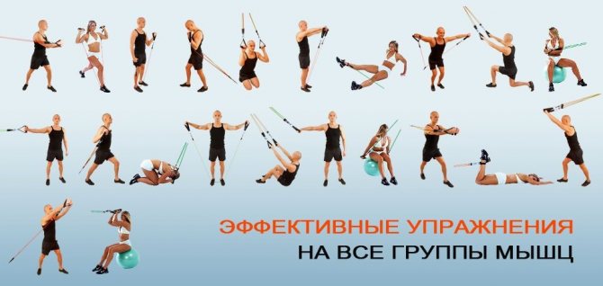 С таким тренажером можно прорабатывать абсолютно все группы мышц. Например, для выполнения упражнений для спины, изделие закрепляется на домашнем турнике или шведской стенке и тянется просто вниз или вбок. При этом можно занимать различные позиции, ложиться на маты, садиться на корточки, поворачиваться спиной и пр.