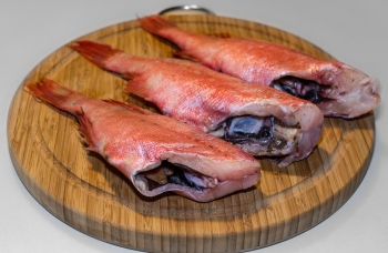 Глаза качественного морского окуня темные, черные, равномерной окраски. Белесые глаза говорят о неоднократной разморозке.