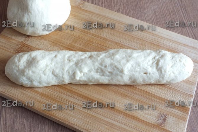 Смажьте руки растительным маслом. Разделите тесто на две части. Каждую часть подкатайте в жгут длиной 25-30 см.