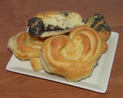 Количество продуктов на 1 кг муки: сахар – 62 г, маргарин – 25 г, соль – 15 г, дрожжи – 25 г, вода – 450 г.
