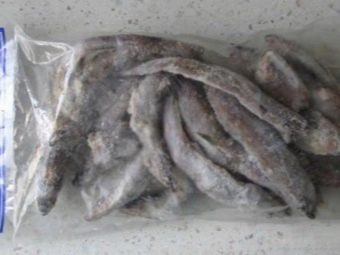 В продаже имеется только замороженная путассу, и это основной недостаток дара моря. Размораживайте на полке холодильника или разложив тушки на столе. Но ни в коем случае не используйте «ускорители» — горячую воду и микроволновку, поскольку при экстремальной разморозке теряются полезности.