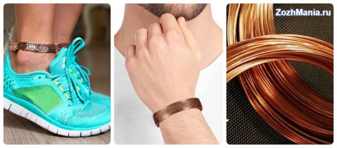 - медной проволокой, шириной в сантиметр, длиной 15 см и толщиной 3 мм (все зависит от объема вашей щиколотки и запястья);