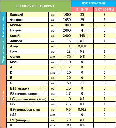 Химический состав лука