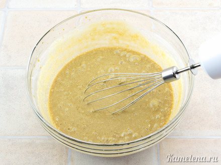 После перемешивания получается в меру густое тесто аппетитного светло-кофейного цвета с крапинками мака.