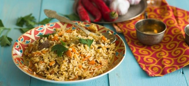 - Лук измельчите кубиками, а морковь натрите на крупной терке. Обжарьте овощи на небольшом количестве растительного масла и добавьте к ним специи. Заправку из овощей переложите к мясу и поставьте на огонь.