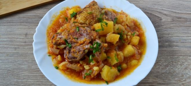 Для его приготовления взять 700 г. порезанной на кусочки птицы, 5-6 шт. картофелин, 2 луковицы, морковь, светлое пиво.