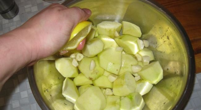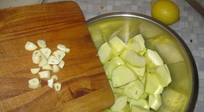 10. Порубите оставшийся чеснок и отправьте к яблокам.