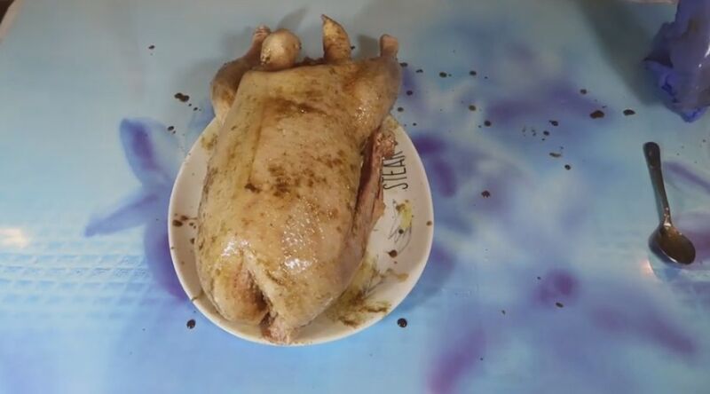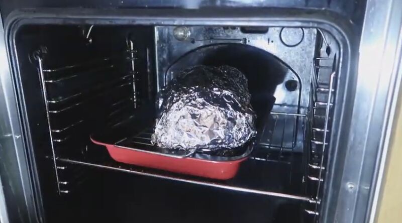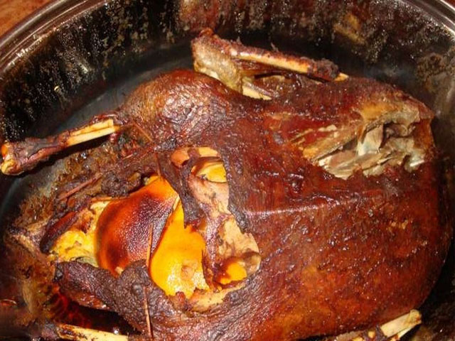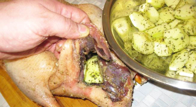 17. Ставим нашу заготовку в разогретую духовку на 3 часа. Все зависит от массы тушки, чем она больше, тем соответственно больше времени понадобится для запекания.