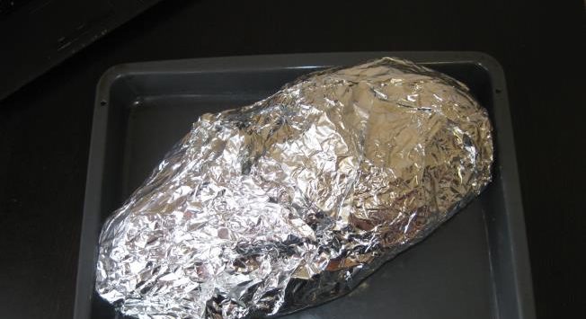 16. Оборачиваем всю птицу фольгой, лучше в два слоя.