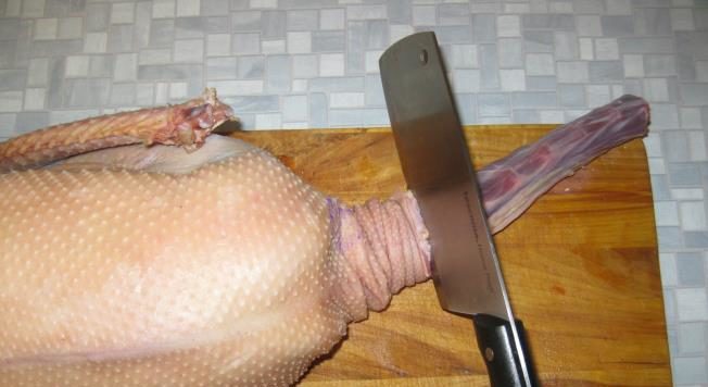 - Разрежьте гуся на куски. Размеры кусков зависят от ваших предпочтений.
