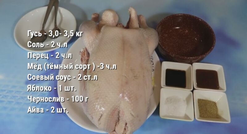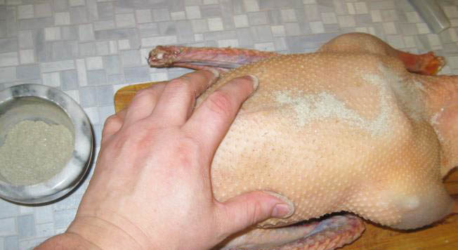 - Тушка гуся, натертая солью – 2 или чуть больше кг