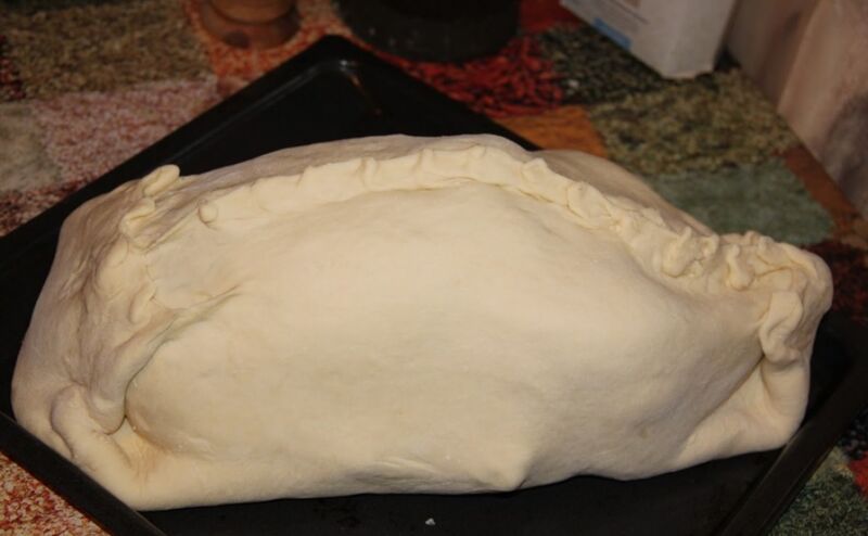 Фаршируем гуся, а затем зашиваем все отверстия, что есть. Стягиваем лапки плотной нитью. Готовим тесто и раскатываем в пласт. Заворачиваем в него тушку и защипываем края.