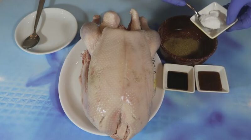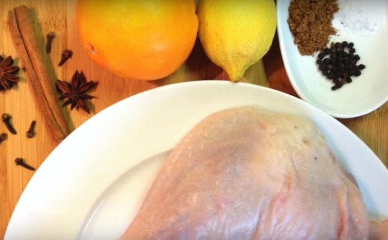 3. Заверните тушку в пищевую пленку и отправьте в холодильник на 1,5 суток или хотя бы на одни.