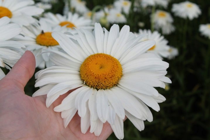 Самая крупная разновидность ромашки, многолетник травянисто-кустарникового типа. Особенность этого вида созвучна названию – соцветия имеют очень крупный размер, цвет – белоснежный, центр – ярко-желтый.